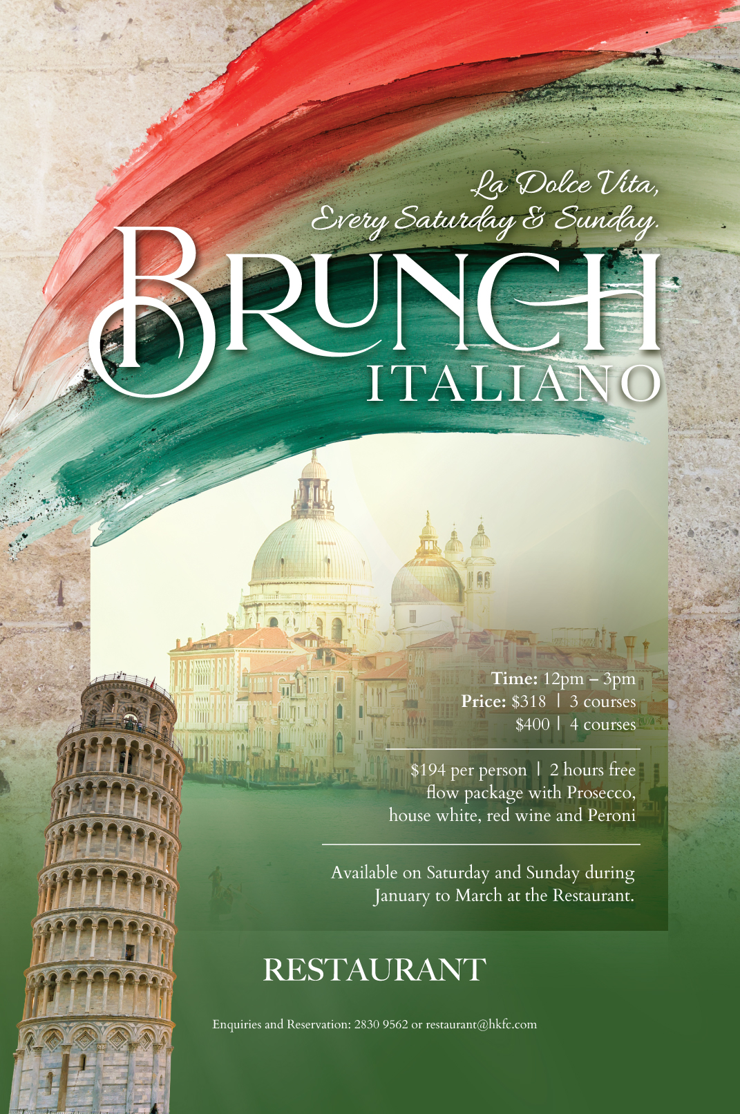 Enquiries and Bookings: 2830 9562 or restaurant@hkfc.com
