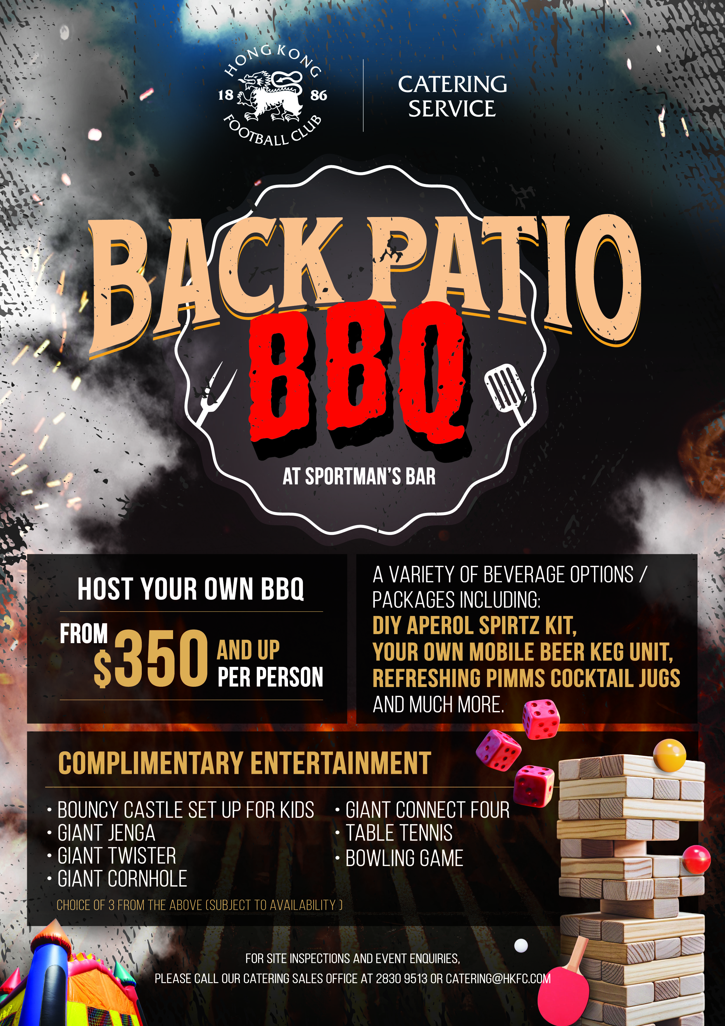 Enquiries: 2830 9513 or catering@hkfc.com