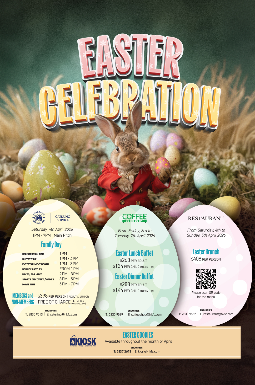 Enquires and bookings: 2830 9513 or catering@hkfc.com