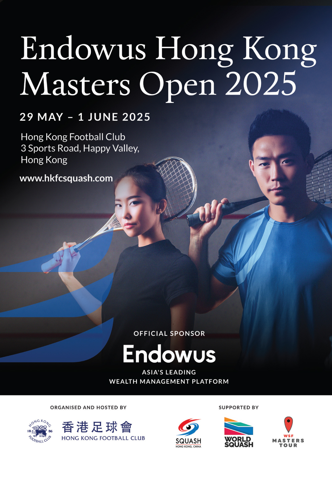 Hosted by the Hong Kong Football Club and supported by the Squash Association of Hong Kong, China, and World Squash, this premier tournament showcases the best of competitive squash at the highest level. Don't miss your chance to experience the intensity and excellence of masters squash in action!